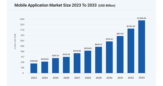 📈 Did you know? The global mobile application development market was valued at USD 196.08 billion in 2023 and is projected to hit USD 1,393.65 billion by 2033. With users expected to spend 58 trillion hours on apps, now is the time to invest in the best mobile app development company. From startups to enterprises, our mobile app development firm builds innovative solutions that drive growth.
